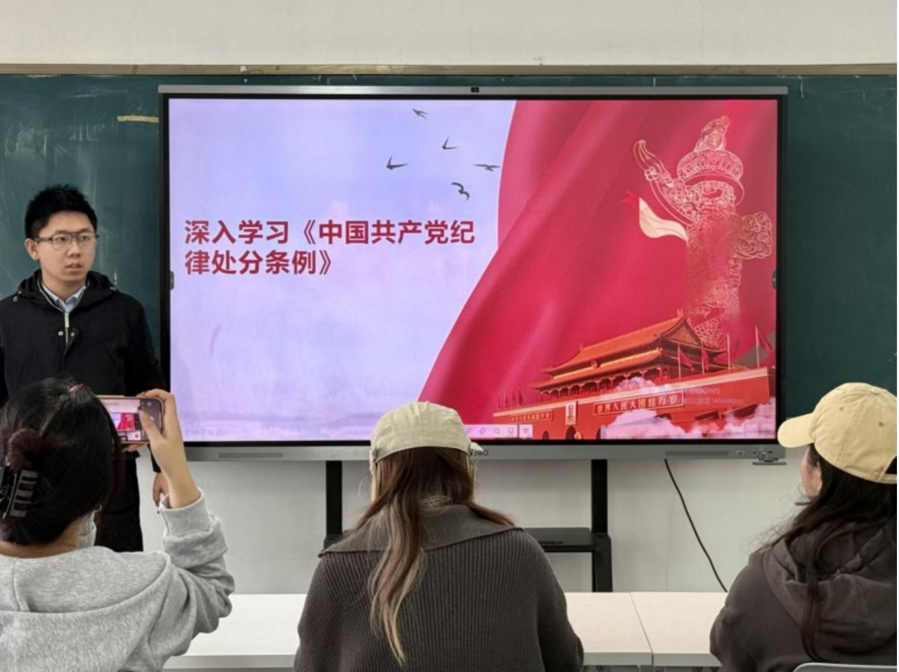 学生党支部党员王皓钰在学习方法指导中强调学用结合,建议通过原原本本学《条例》、紧密联系实际所学、深化以案促学等多种途径,将纪律要求内化于心、外化于行。