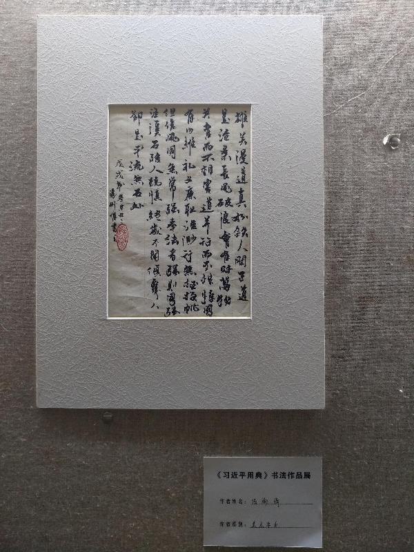 本次书法比赛活动受到各位同学的热情欢迎和积极参加,参加展示的书法作品均是经过美术学系学生党员、预备党员和部分入党积极分子以及其他系的学生利用课余时间在认真学习《习近平用典》的基础上一笔一划精心制作完成的。其中优秀作品主题鲜明,意蕴丰富,有刚正不阿的楷书,有古色古香的隶书,也有潇洒飘逸的行书。各作品集思想性、艺术性、观赏性于一体,导向正确、各具特色,具有较高的品味。