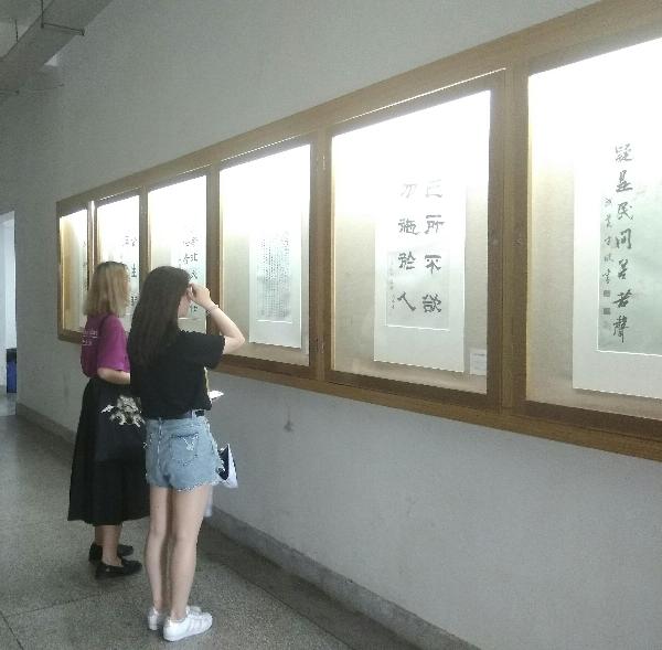 (通讯员:赵月琪 陈方亮)为了丰富大学生的校园文化生活,提高大学生的审美水平,增进大学生之间的交流,进一步扎实推进“两学一做”学习教育,美术学系学生支部举行了“习近平用典”书法比赛活动,并在A11-2楼走廊设立了“习近平用典”书法作品展,本次作品展共展出优秀作品20余件,吸引了众多师生驻足观看。
