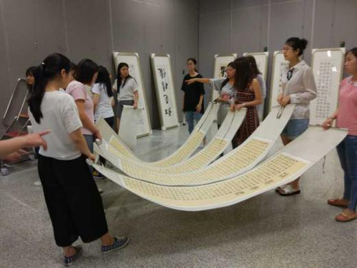 (通讯员:王日伟)2016年6月24日,为践行“两学一做”让党员志愿活动常态化,增强党员的责任意识、服务意识,我系全体学生党员和积极分子自发与我系青年志愿者协会共同前往湖北省图书馆协助石秀芳老师策划展出“湖北省老年大学学员优秀书画作品展”。