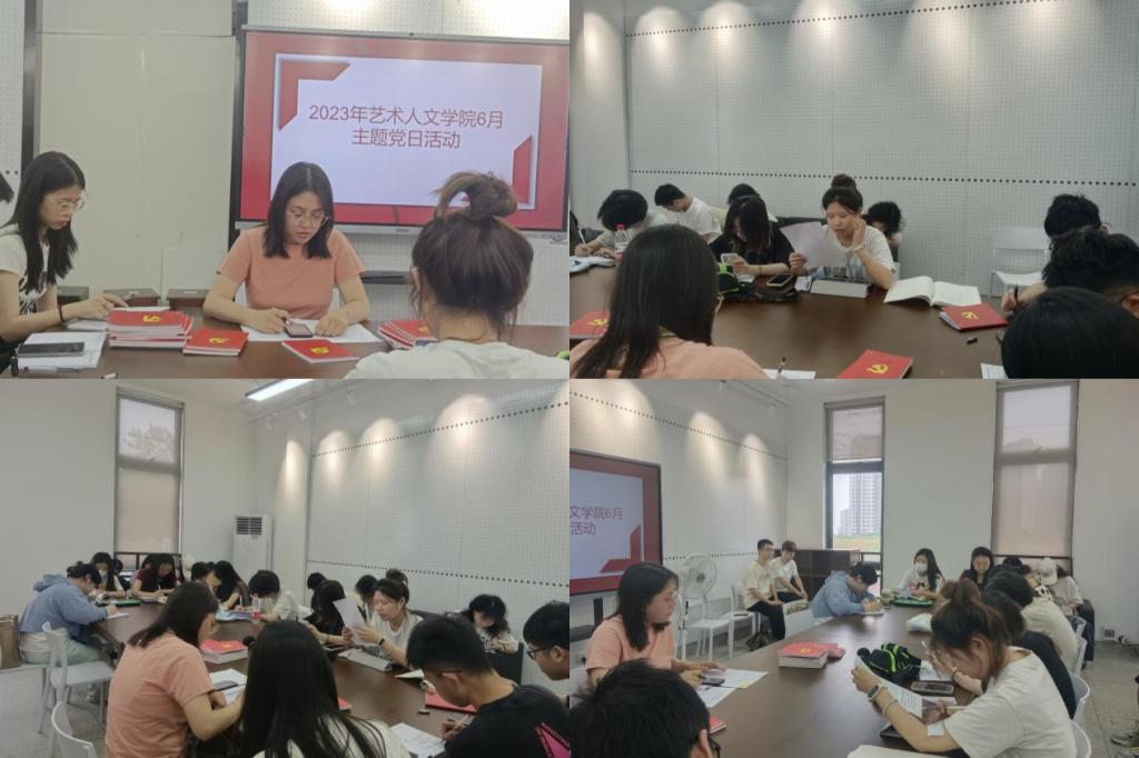 (通讯员:刘盼)为了全面贯彻党的二十大精神,进一步提高我院党员思想素质,艺术人文学院于2023年6月15日在A11-307开展“学思想,强党性”主题党日活动,会议由黄菊老师主持,学生党支部全体成员参加。