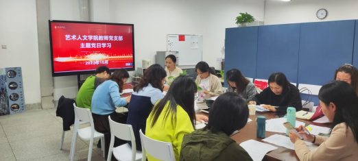 为深入开展学习贯彻习近平新时代中国特色社会主义思想主题教育,加强党性锻炼,锤炼党性修养,艺术人文学院于10月26日下午在A11-301,开展“学思践悟创新理论,担当新的文化使命”10月主题党日活动。此次会议由支部书记徐丹丹主持,艺术人文学院教工支部全体党员参加。