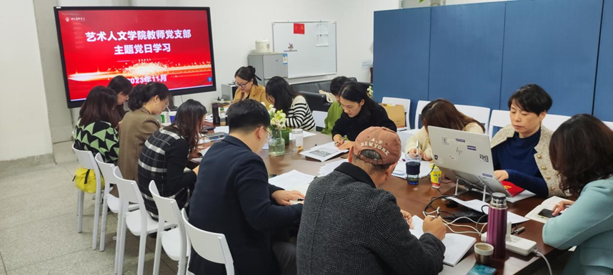 艺术人文学院于2023年11月22日下午14点在A11-301教室开展教工党支部11月主题党日集体学习,艺术人文学院教工党支部全体成员参与此次学习。