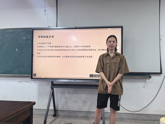 20级艺术设计学的虞硕同学通过讲述其考研经历,着重强调了在备考心态的重要性,提醒同学们要适当放松、劳逸结合,热情地分享了自我调节的小技巧。20级艺术设计学的何加贝同学为同学们介绍了各类就业岗位的应聘要求和报考条件,建议考公、考编的同学们要有面对压力的能力。同学们积极提问,学长们耐心给予解答和建议。