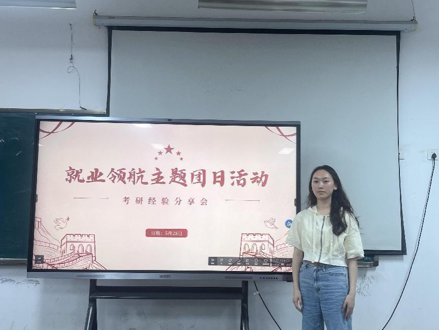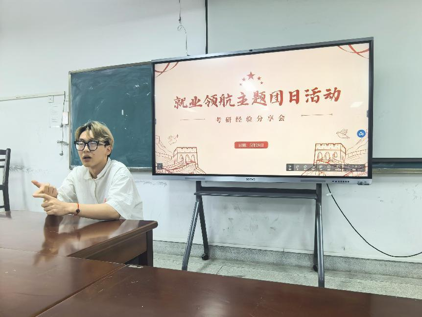 (通讯员:袁新星诸葛仪)为引导大学生立足实际、找准定位,树立理性、平实的择业观、就业观。艺术人文学院于5月28日在A11-210教室举办了“就业引航”主题团日活动,活动邀请2名毕业年级同学分享考研升学经验。本次活动由熊洁欣主持,各班团支书及学生代表参加。