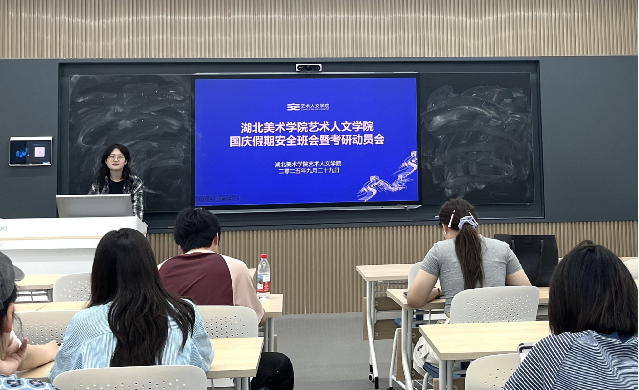 为切实保障艺术人文学院学子假期安全、助力考研学子高效备考,艺术人文学院于9月29日下午在A11-304教室组织召开国庆假期安全班会暨考研动员会。艺术人文学院辅导员李晴和22级全体本科生参会。